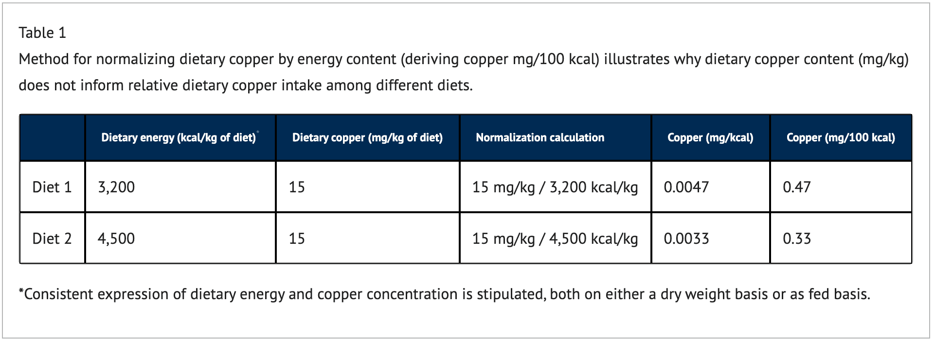 - “If declining copper content to 0.10-0.12 mg Cu/100 kcal (below FDA/AAFCO regulatory limits) is dangerous, the vulnerable studied population should have shown deficiency symptoms and a negative impact on lifetime survival. The study of more than 200 dogs fed a lifetime copper-restricted diet found no signs of copper deficiency or shortened survival.”